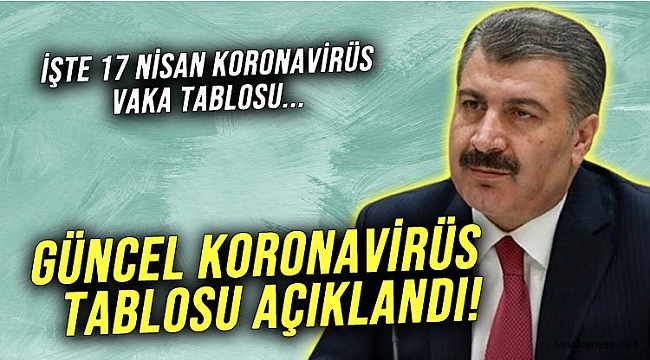 17 Nisan Türkiye'nin güncel koronavirüs verileri açıklandı. Koronavirüs nedeniyle son 24 saatte 17 kişi hayatını kaybetti, yeni vaka sayısı ise 3 bin 268 oldu.