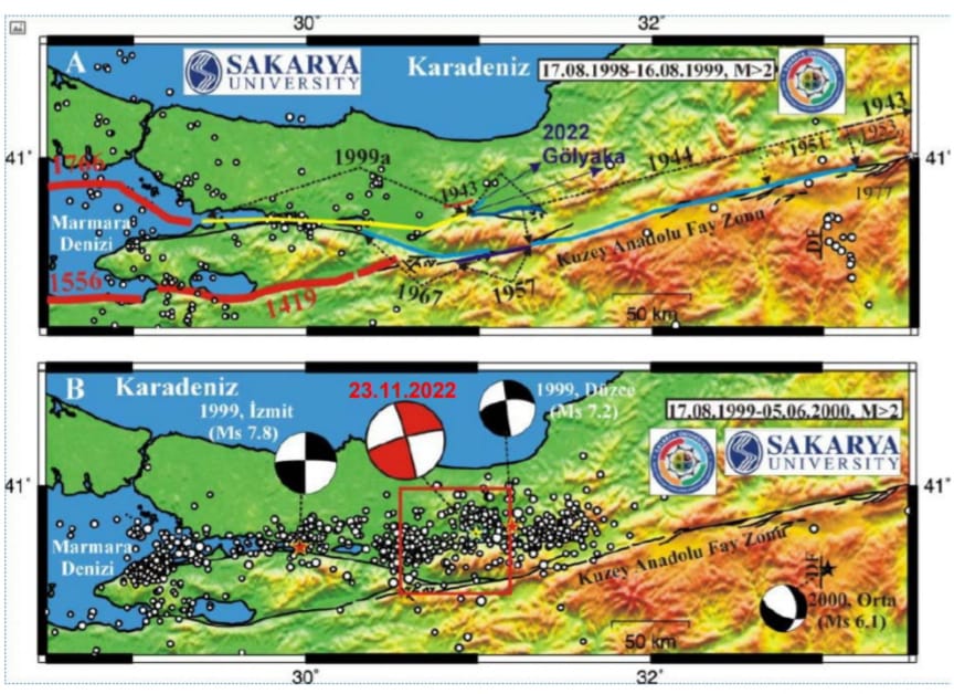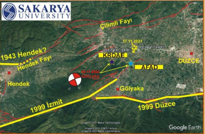 Araştırmacılar, 1999 İzmit ve Düzce deprem kırılmaları kaynaklı olan zaman içindeki gerilme değişimlerinin üniversitemizde devam eden TÜBİTAK destekli bir proje kapsamında hesaplandığını bildirdi. Bu hesaplamaların 2022 Gölyaka (Düzce) depremi odağının son 23 yıl içinde yaklaşık 5 bar civarında zamanla artışı azalarak devam eden bir gerilme yüküne maruz kaldığına işaret ettiler. Bu sonucun, 2022 Gölyaka (Düzce) depreminin 1999 İzmit ve Düzce depremlerinden bağımsız ele alınamayacağını vurgulayan araştırmacılar, 1999 depremlerinin yer kabuğundaki etkisinin azalarak da olsa devam ettiğini belirtti.