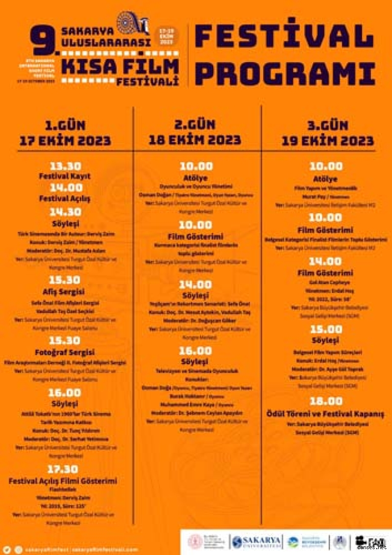 Sakarya Büyükşehir Belediyesi ile Sakarya Üniversitesi ortaklığında, Kültür ve Turizm Bakanlığı Sinema Genel Müdürlüğü’nün destekleriyle organize edilen 9. Sakarya Uluslararası Kısa Film Festivali 17-19 Ekim tarihleri arasında gerçekleştirilecek. Türkiye ile birlikte 93 ülkeden 1730 film, festivalin en iyi yapımı olmak için yarışacak. Festivale başarılı yönetmen Derviş Zaim onur konuğu olarak katılacak. Türk sinemasına yaptığı katkılardan dolayı başarılı yönetmen Derviş Zaim’e ‘Onur Ödülü’ takdim edilecek.