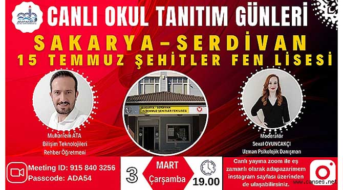 Serdivan ilçesinde bulunan 15 Temmuz Şehitler Fen Lisesi ile devam edeceği ve