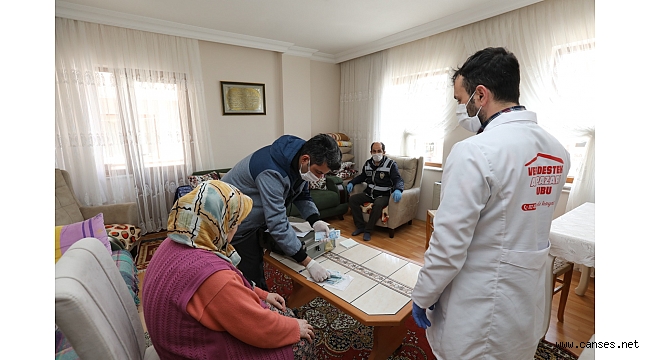 olarak, PTT Müdürlüğü işbirliği ile emeklilere maaşları evlerinde teslim ediliyor.