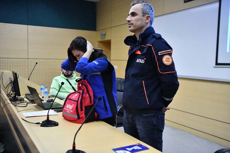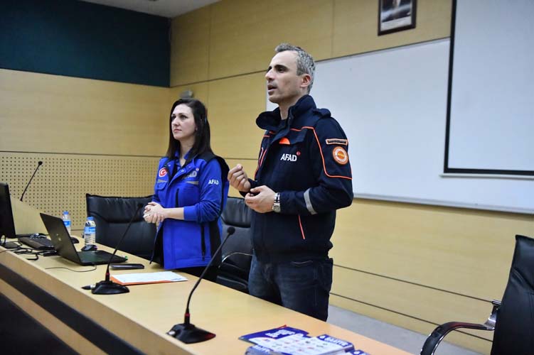 Doğal afetlerde zeminin sağlamlığının öneminden bahseden AFAD Arama Kurtarma Teknisyeni Bülent Doğru, sağlam binada yaşamanın önemine değinerek afet sonrası ilk 24 saatte gerekli bilgilerin bilinçli bir şekilde uygulanması gerektiğini söyledi. Afet öncesinde yapılacak eğitimlerle kişilere hayat üçgeninin öneminin anlatılması gerektiğini aktaran Doğru, “Afet bir olayın kendisi değil doğurduğu sonuçtur.” dedi.