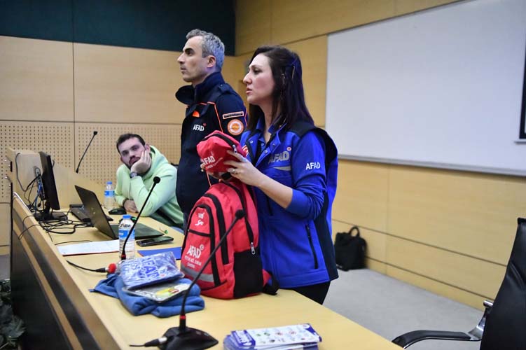 Eğitimde afet çantası üzerine bilgilendirmelerde bulunan AFAD Gönüllü Koordinatörü İlknur Koç, afet çantasının yaşanan afetten sonrası için önemli bir rol oynadığını vurguladı. Afet çantasının hayati önem taşıdığını aktaran Koç, Çantaya ömrü uzun ve enerji verecek gıdaların konulmasının öncelikli olduğunu ve el feneri, düdük, yara bandı, sürekli kullanılan ilaçlar gibi ürünlerin de çantada bulunması gerektiğini belirtti.