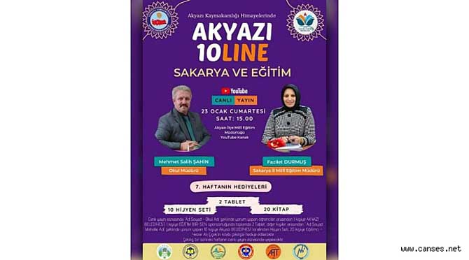 Moderatörlüğünü Akyazı Ahmet Hasnun Tunçsoy İlkokulu Müdürü Mehmet Salih Şahin’in yapacağı programda yayına katılan izleyiciler arasında yapılacak çekilişte 2 tablet, 10 hijyen seti ve 20 kitap hediye edilecek.
