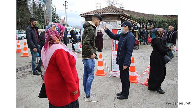 • Pazarcı esnafının ve pazaryerine giren vatandaşlarımızı temassız ateş ölçer ile kontrol ediyoruz.