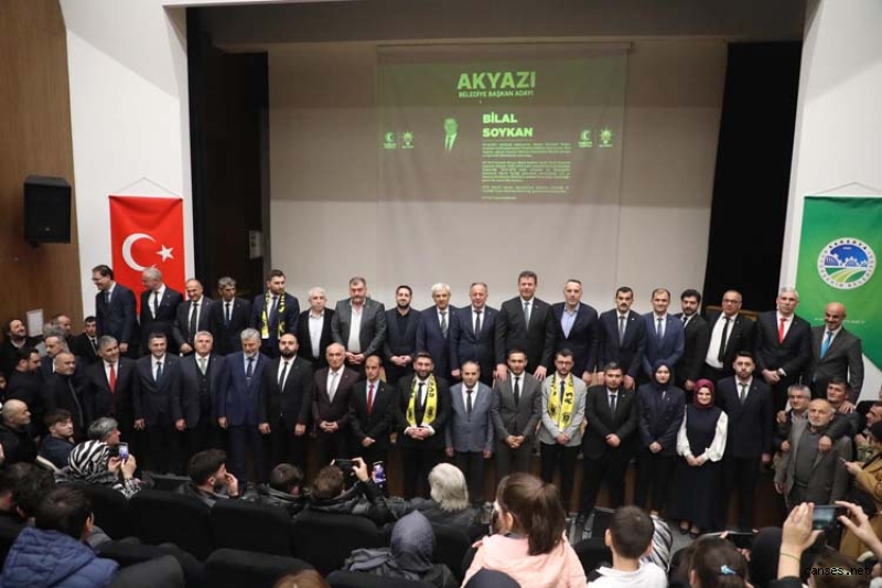 Cumhur İttifakı Belediye Başkan Adayı Bilal Soykan ise, “ Bu coşku için her birinize teşekkür ediyorum. Bizim davamız, Cumhur İttifakı’nın davası millete hizmet davası. Kıymetli meclis üyesi adayları ile ilçemiz için tevâzu,samimiyet ve gayretle çalışmaya hazırız, kararlıyız. Biz vatandaşlarımızın teveccühü ile Akyazı’da seçimleri kazanacağımızı biliyor ve hemşerilerimize güveniyoruz. En büyük hedefimiz yine rekorlar kırmak, birincilikler elde etmek ve meclisimizde 25-0 yapmak” dedi.