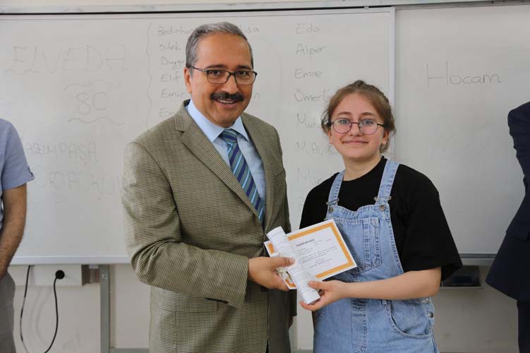 Serdivan’da 2021-2022 Eğitim Öğretim Yılı’nın ikinci dönemi karnelerin dağıtılmasıyla sona ererken, Başkan Yusuf Alemdar, Serdivan Kaymakamı Ali Candan, Serdivan İlçe Milli Eğitim Müdürü Ali Dere, Serdivan Belediyesi Meclis Üyesi Yusuf Karaca, Kazımpaşa Okul Müdürü Mutlu İlgin, Hamitabat Mahalle Muhtarı Ali Uludağ, Reşadiye Mahalle Muhtarı Necmettin Kocaman ile birlikte Kazımpaşa İlk ve Ortaokulu’nda karne törenine katıldı.