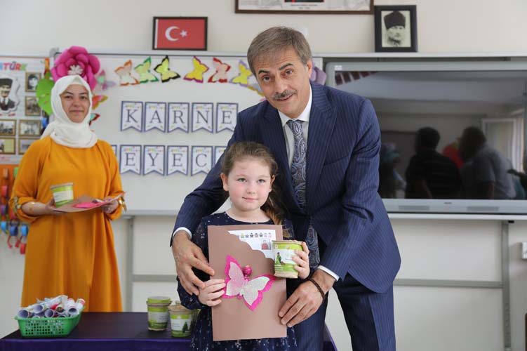 Öğrencilere karnelerini dağıtan Başkan Alemdar, tatili iyi değerlendirmeleri gerektiğini söylediği çocuklara yarıyıl tatillerinde hem dinlenmelerini, hem eğlenmelerini hem de bol bol kitap okumalarını tavsiye etti.