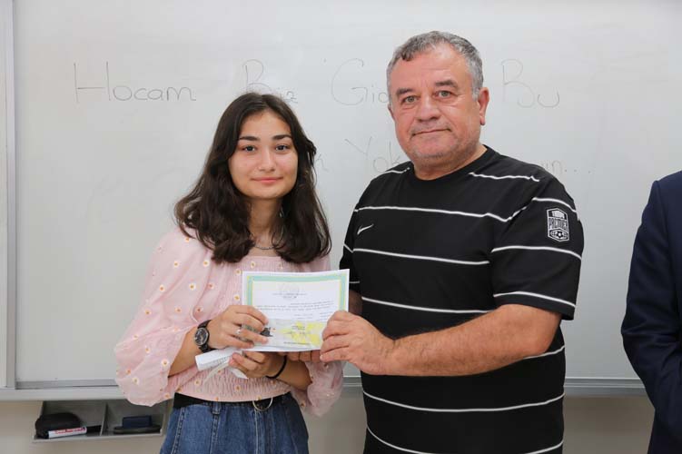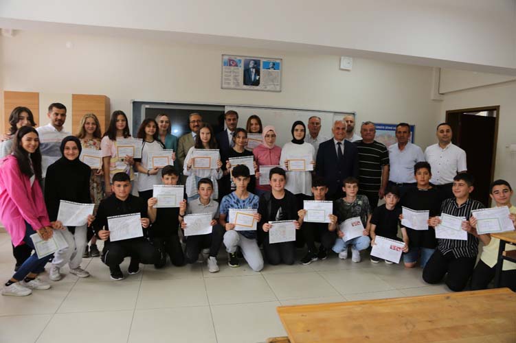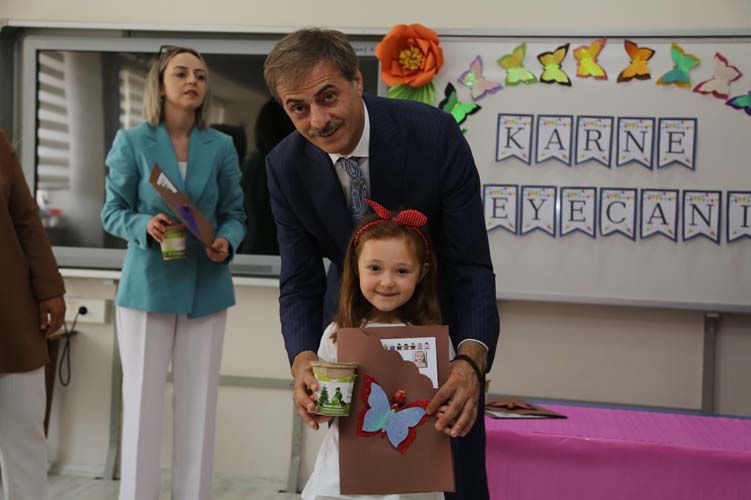 2021-2022 Eğitim Öğretim Yılı 2. Yarıyıl Karne Dağıtım Töreni, Başkan Alemdar’ın çocuklarla hatıra fotoğrafı çektirmesinin ardından sona erdi.