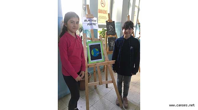 Öğrencilerin sanatsal zekalarını, yaratıcılıklarını, yabancı dil kelime haznelerini, cümle kurma becerilerini geliştirmeyi hedefleyen ‘Blackout Poetry’ çalışması çok beğenildi.