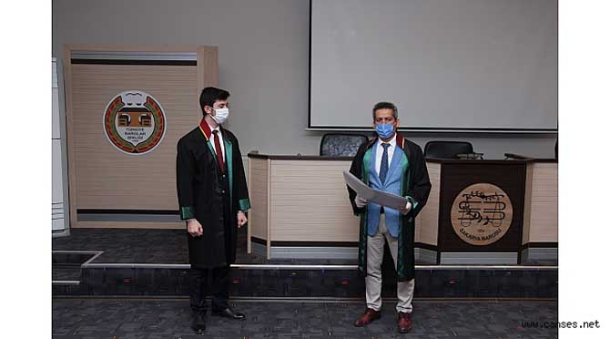 Burak, törenin sonunda ise Güloğlu’na Avukatlık Kanunu, Sakarya Barosu Rozeti
