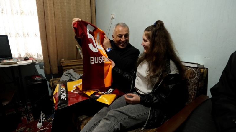 Sosyal medya hesabından Galatasaray taraftarı olduğu da anlaşılan Busenur’a ayrıca özel hazırlık yapıldı. Başkan Babaoğlu, 54 numaralı Busenur yazılı Galatasaray forması ile birlikte çeşitli hediyeler verdi.