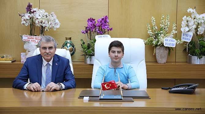 Sakarya Büyükşehir Belediye Başkanı Ekrem Yüce, 23 Nisan Ulusal Egemenlik ve Çocuk Bayramı kapsamında başkanlık koltuğunu Muhammet Ali Çevik’e devretti. Şehit Bülent Yurtsever İmam Hatip Ortaokulu Müdürü Mustafa İnan, Öğretmeni Ahmet Yakupoğlu, Okul Aile Birliği Başkanı Ahmet Cihan ve Erenler İlçe Milli Eğitim Müdürü Ayhan Erdoğan’ın da hazır bulunduğu programda Başkan Çevik, tüm çocukların 23 Nisan Ulusal Egemenlik ve Çocuk Bayramı’nı kutladı. Ekrem Yüce ise gelecek nesillerin hedefleri doğrultusunda kendilerini geliştirmelerinin önemine değinerek, Başkan Çevik’e hediye takdim etti.