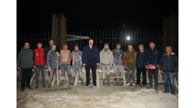 Spor Kompleksi’nde devam eden inşaat çalışmalarını yerinde takip eden Akyazı Belediye Başkanı Bilal Soykan da yeni yıla işçilerle birlikte girdi. Yılın son saatlerini işçilerle birlikte geçiren Başkan Soykan saat 24.00 olduğunda tüm işçilerin yeni yılını kutladı. Geç saatlere kadar çalışan işçilere emeklerinden için teşekkür eden Başkan Soykan, “ Yeni yıla Akyazı Spor Kompleksi Projemizin Spor Salonu bölümünün temelini atarak girmiş olduk. Sabah beşten gecenin bu saatine kadar 2 bin 100 metreküp beton dökmüş olduk. Dolayısı projemizin en ağır beton işini de bitirmiş olduk. Elinize emeğinize sağlık. Yeni yılda hepinize sağlık, mutluluk ve başarı diliyorum. İnşallah yeni yıl ilçemiz için, ülkemiz için ve tüm İslam alemi için hayırlara vesile olsun. Hepinize çok teşekkür ediyorum” dedi.