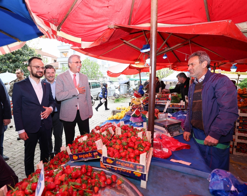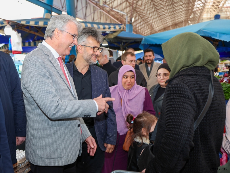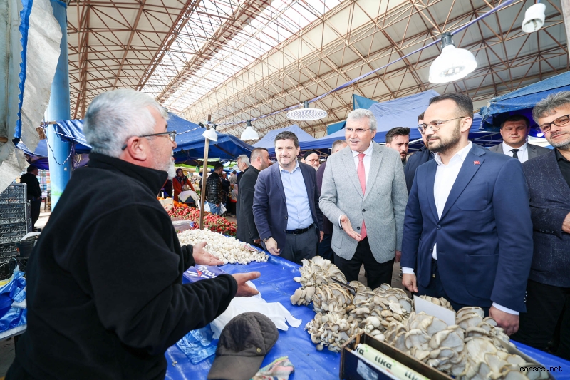 Saha çalışmalarına aralıksız devam eden Yüce, esnafla ve alışveriş yapan vatandaşlarla görüştü. Adapazarı Belediye Başkanı Mutlu Işıksu, AK Parti Milletvekili Adayı Akif Adnan Dizer ve partililerle birlikte pazarı dolaşan Yüce, bazı noktalarda tezgâh başına geçerek esnafın çalışmalarına dâhil oldu.