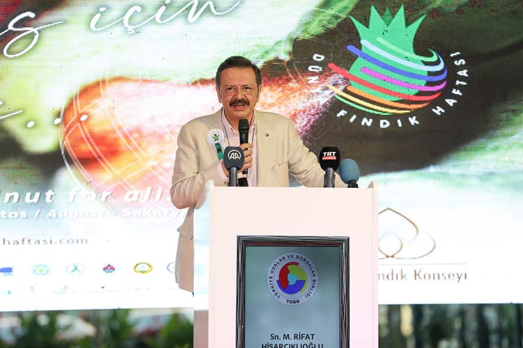 TOBB Başkanı Rıfat Hisarcıklıoğlu, “Bugün fındığa değer katanlar ödül törenine katılmaktan onur duyuyorum. Fındık Türkiye’nin en stratejik tarım ürünüdür. Topraktan yetişen altındır. İthalat girdisi olmadan muazzam bir ihracat ile ülkemize döviz girdisi sağlayan kıymetli bir üründür. Allah’ın bize armağanı olan fındığı korumak en büyük borcumuz. Katma değer olarak işleyerek satmalıyız. Sanayi alanında daha fazla işlemeli ve verimi artırmalıyız. Fındığın daha çok kazandırması için gayretli çalışmalarımız devam ediyor. Tarımı asla ihmal edemeyiz.” İfadelerini kullandı. Törende konuşan Ulusal Fındık Konseyi Başkanı Hamza Bölük, “Fındık konusunda birbirinden değerli çalışmalar yapan üniversitelerimiz var. Fındığın katma değerli ürünlerini ürütmek ne kadar artarsa ekonomik getirisi de o kadar artar. İlk hedefimiz 5 milyar dolarlık bir getiri. Çiftçileri ve sanayicileri bir araya getiren bu etkinlik çok değerli” dedi. TMO genel müdürü Ahmet Güldal ise, “Karadenizin fındık üreticisine hizmet vermekten onur duyuyoruz. Üreticimiz için şok önemli olan bir alım sezonuna en iyi şekilde hazırlanıyoruz. 54 liralık fiyattan herkes memnun. Bu memnuniyete zarar vermeden çiftçimizi memnun etmeye devam edeceğiz” diye konuştu.