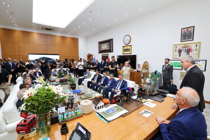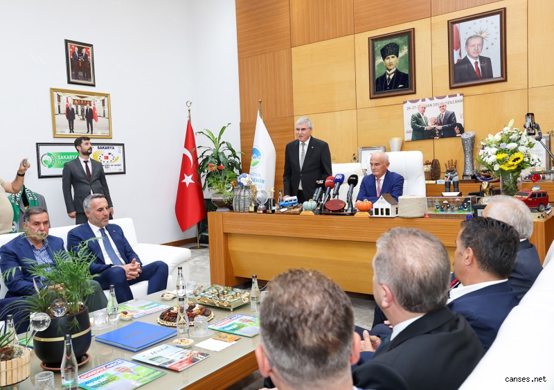 Nazik ziyaretlerinden dolayı sözlerine teşekkür ederek başlayan Başkan Ekrem Yüce, “Bizim için bugün tarihi bir gün. Kendisini idol olarak aldığımız genel başkan yardımcımız şehrimize teşrif ettiler. Kardeşliğin, dostluğun, hürmetin şehri olan Sakarya’ya bir kez daha hoş geldiniz. Şehrimiz, ülkemizin en önemli illerinden birisi. İlçelerimizle birlikte çok ciddi bir şekilde vatandaşlarımıza hizmet ediyoruz. Birçok farklı kültürü barındırdığımız bu şehirde bereketli toprakları işliyor, sanayi kollarını destekliyor, tarıma yön veriyor, spor da başarıdan başarıya koşuyor, turizm de vatandaşlarımızın istekleri doğrultusunda hareket ediyoruz. Farklı farklı birçok koldan her yere dağılan Sakarya’mız kendini her zaman ön planda tutmaya devam ediyor. Bu kadar başarının en tepesinde Sayın Cumhurbaşkanımız yer alıyor. O bizlerin başında olduğu sürece daha çok başarıya koşmaya devam edeceğiz” ifadelerini kullandı.