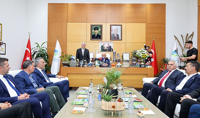 Başkan Yüce, AK Parti Yerel Yönetimlerden Sorumlu Genel Başkan Yardımcısı Yusuf Ziya Yılmaz ve yardımcılarını Büyükşehir Belediyesi’nde konuk etti. Başkan Yüce, “Bereketli topraklarımızı işliyor, sanayi kollarını destekliyor, sporda başarıdan başarıya koşuyor, turizm potansiyelimizi gün yüzüne çıkarıyoruz. Sayın Cumhurbaşkanımızın liderliğinde şehrimize en iyi hizmeti sunmak için gayretle çalışıyoruz” dedi. Genel Başkan Yardımcısı Yılmaz ise “İnsana hizmeti her şeyin önünde tutan, insan hayatının konforu birinci önceliği olan bir siyasi topluluğuz” dedi.