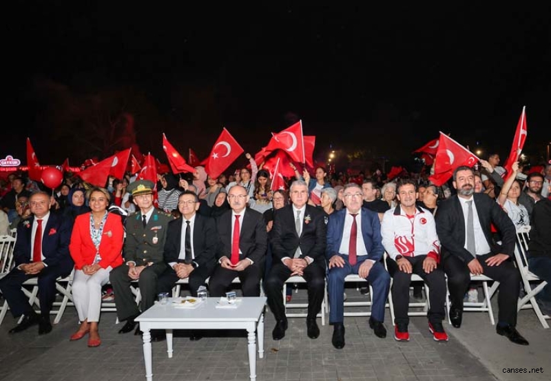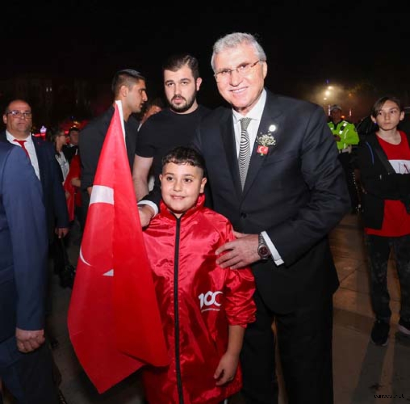 Sakarya Büyükşehir Belediye Başkanı Ekrem Yüce, Cumhuriyet’in 100. Yıldönümünde 29 Ekim Cumhuriyet Bayramı’nda Sakarya genelinde gerçekleştirilen kutlama programlarına eşlik etti. Ay yıldızlı bayraklarla süslenen 15 Temmuz Demokrasi Meydanı’nda telefon ışıklarının görsel bir şölene dönüştüğü kutlamaya katılan Yüce, Sakaryalılarla birlikte bayram coşkusuna ortak oldu.