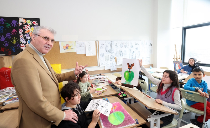 Büyükşehir Belediye Başkanı Ekrem Yüce Sosyal Gelişim Merkezi’nde eğitim gören miniklerin derslerine konuk oldu. Ziyarette öğrencilerle tek tek ilgilenen Başkan Yüce, “Bugün merkezimizde Resim, Mutfak Atölyesi ve Geleneksel Türk Tiyatrosu kursu öğrencilerimizin derslerine konuk olduk. SGM’lerde çocuklarımız yeteneklerini keşfediyor, geleceklerini sağlam temeller üzerine inşa ediyor. İnşallah minik evlatlarımızı desteklemeye, eğitimlerine katkı sunmaya devam edeceğiz” dedi.