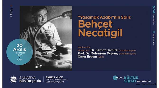 Büyükşehir Belediyesi Aralık Kültür Sanat Etkinlikleri 20 Aralık Pazartesi günü ‘Yaşamak Azabının Şairi: Behçet Necatigil’ adlı panel ile devam edecek. AKM’de saat 19.00’da gerçekleştirilecek olan panelde Necatigil’in edebi hayatı ve yaşamı konuşulacak.
