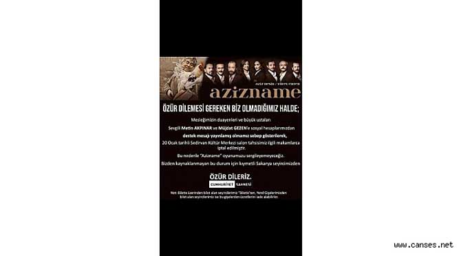 Artık bizi şaşırtmayan türden olan bu iptalin gerekçesi en az iptal eylemi kadar vahimdir. Belediyeyi yönetenlere hatırlatırım ki, Serdivan Belediyesi’nin Kültür Merkezi belediyenin diğer tüm taşınmazları gibi halkın vergileri ile yapılmıştır ve halkın malıdır. Seçimler ile belli bir dönem belediyeyi yönetmek üzere görev alanlar bunları yönetirken o taşınmazlarda kendilerine oy veren ya da vermeyen herkesin hakkı olduğunu unutmadan, halkın her kesimi tarafından kullanımını sağlamakla yükümlüdür. Sergilenecek oyunu beğenmemeleri ya da sergileyecek olanlar ile aynı düşünceyi paylaşmıyor olmaları bunu değiştirmez.