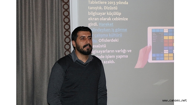 Ersin Çelik, “Şu an içinde bulunduğumuz yıllar, bilgisayarların tabletleşmesi ve tabletlerinde cep telefonlaşması dönemi aslında. Artık bilgisayarımızı cebimizde taşıyoruz. Bu bize mobilize olma yeteneği kazandırdı. Yolculuk esnasında maillerimizi kontrol edebiliyoruz veya gerekli bir işlemi hemen yapabiliyoruz. Mobil olmanın ve dijitalleşmenin seyrini ‘iPhone’ geliştirdi. Bu telefon çıkmadan önce ‘iPod’ adında eskiden bizimde kullandığımız walkmanleri bitiren bir cihazı ortaya çıkardılar. Bu cihaz küçük ve dokunmatik olmasının yanı sıra birçok müziği içinde barındırıyor. 2007 yılında ise her şeyi komple yıkacak bir devrim olan iPhone’lar tüm dünyada bir yenilik olmuştur” sözlerine yer verdi.