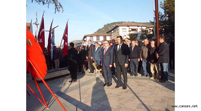 Şehit Mehmet Nuri Kocabıyık Meydanında Atatürk Anıtında yapılan çelenk sunmada Kaymakam Abdullah Arslantürk ve Belediye Başkanı İbrahim Pilavcı tarafından çelenklerin sunulmasının ardından saat 09:05 te “ Tİ” işareti ile 2 dakikalık saygı duruşunda bulunuldu. İstiklal Marşının okunması ile birlikte gönderdeki Türk Bayrağı ağı ağır yarıya indirildi.