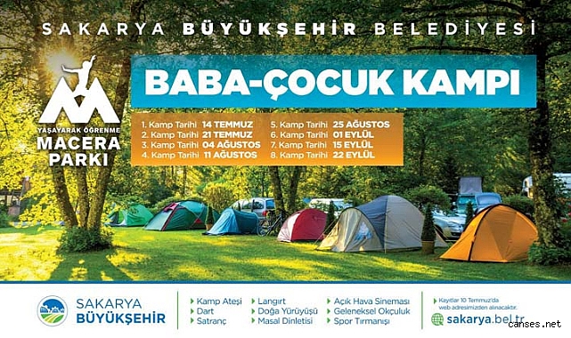 Sakarya Büyükşehir Belediyesi tarafından çocuklara doğa sevgisini aşılamak ve farklı kuşakların birbirlerine deneyimlerine aktarmaları adına gerçekleştirdiği baba-çocuk kamp etkinliklerinde yeni döne başlıyor. Daha önce baba-çocuk kamplarının yanı sıra dede-torun kampları ile de büyük beğeni toplayan etkinliklerin ilk programı 14 Temmuz tarihinde Yaşayarak Öğrenme Macera Parkı’nda gerçekleşecek.