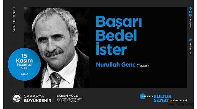 Büyükşehir Belediyesi Kasım kültür sanat etkinlikleri 15 Kasım Pazartesi günü yazar Prof. Dr. Nurullah Genç’in ‘Başarı Bedel İster’ isimli konferansı ile devam edecek. AKM’de gerçekleştirilecek etkinliğe kültür ve sanatsever vatandaşlar davet edildi.