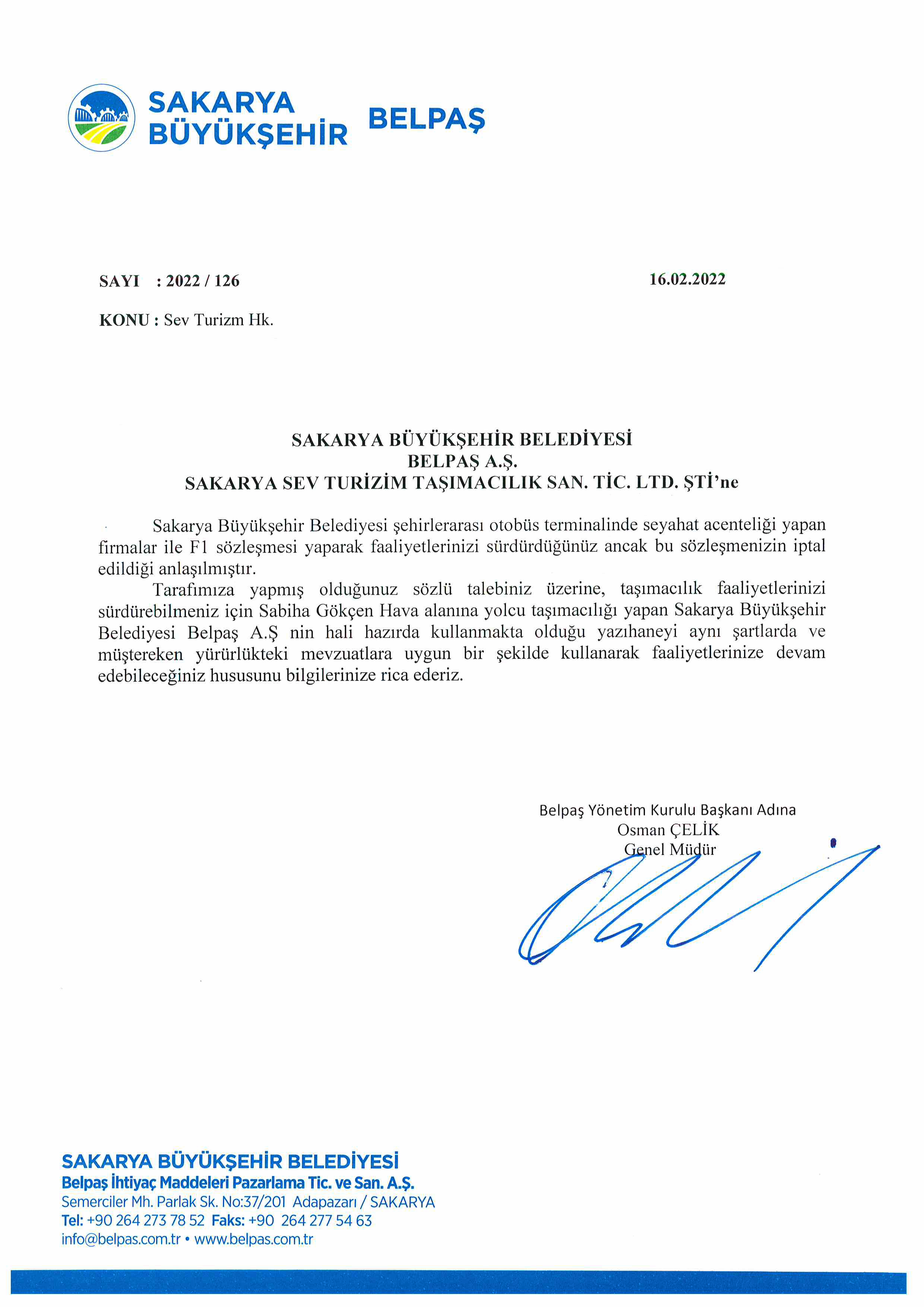 SEV Turizm firması 2021 yılında TBMM Kamu Denetçiliği Kurumuna (Ombdusmanlık)