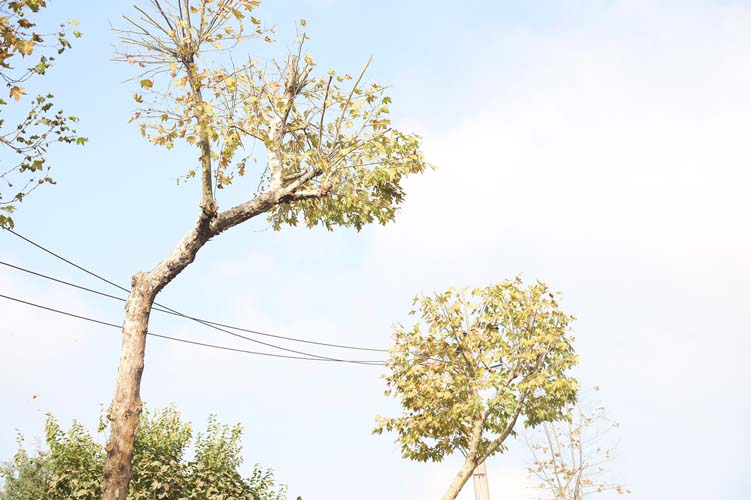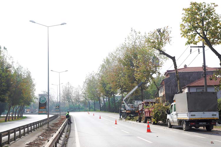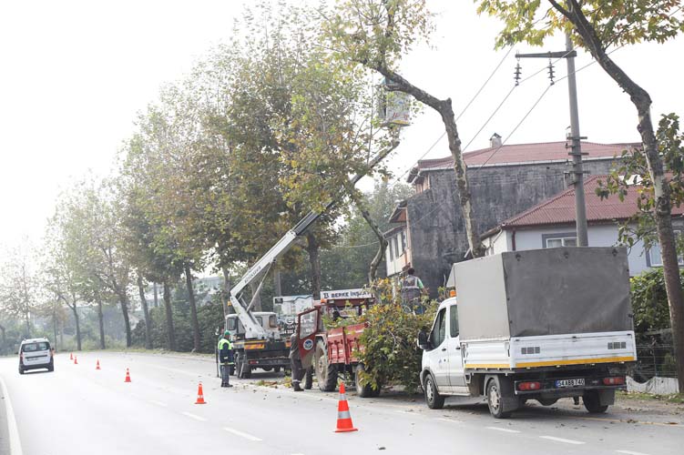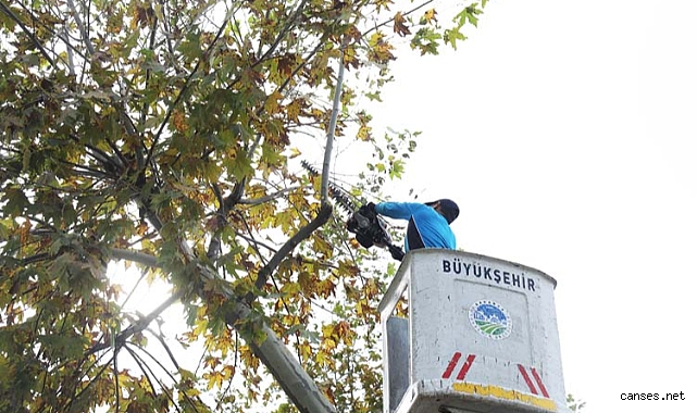 Büyükşehir Belediyesi, trafiğin yoğun olarak aktığı bölgelerde sürücüler için tehdit oluşturan ağaçları budarken, yaptığı çevre düzenlemeleriyle şehir estetiğine katkı sunuyor.