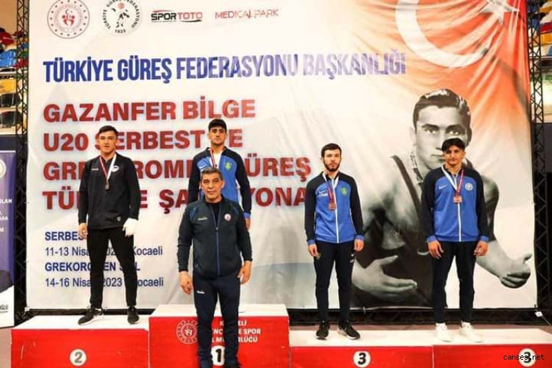 Sakarya Büyükşehir Belediyesi Spor Kulübü güreş sporcuları, Kocaeli’de düzenlenen U20 Grekoromen Türkiye Şampiyonası’nda önemli bir başarıya daha imza attı. 13-16 Nisan tarihleri arasında düzenlenen şampiyonada mindere çıkan İlias Jason Ayhan 63 kilogamda ve Hamza Sertcanlı 87 kilogramda Türkiye Şampiyonu oldu. Birbirinden zorlu mücadelelere sahne olan şampiyonada, Ramazan Can Aktaş 67, Alkan Akar 72, Emir Tuğra Dayal 82 ve Muhittin Emre Helvacı 97 kiloda ikincilik elde etti. Şampiyonada Muhammed Ali Göçmen ise 72 kilogramda üçüncü oldu. Bu sonuçlarla birlikte toplamda 7 madalya kazanan Büyükşehir Belediyesi Spor Kulübü, takım olarak Türkiye üçüncüsü oldu. Büyük heyecana sahne olan müsabakalara sporseverler yoğun ilgi gösterdi.