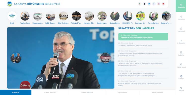 Sakarya Büyükşehir Belediyesi’nin dünyaya açılan kapısı www.sakarya.bel.tr yenilendi. Vatandaşların belediye ve faaliyetleri ile ilgili bilgilere kolay ulaşabilmesini sağlamak amacıyla mobil uyumlu hale getirilen resmi web sitesinin arayüzü de büyük bir dönüşüme uğradı. Yılda yaklaşık 5 milyon defa tıklanan site, yeni tasarımıyla büyük beğeni topladı.