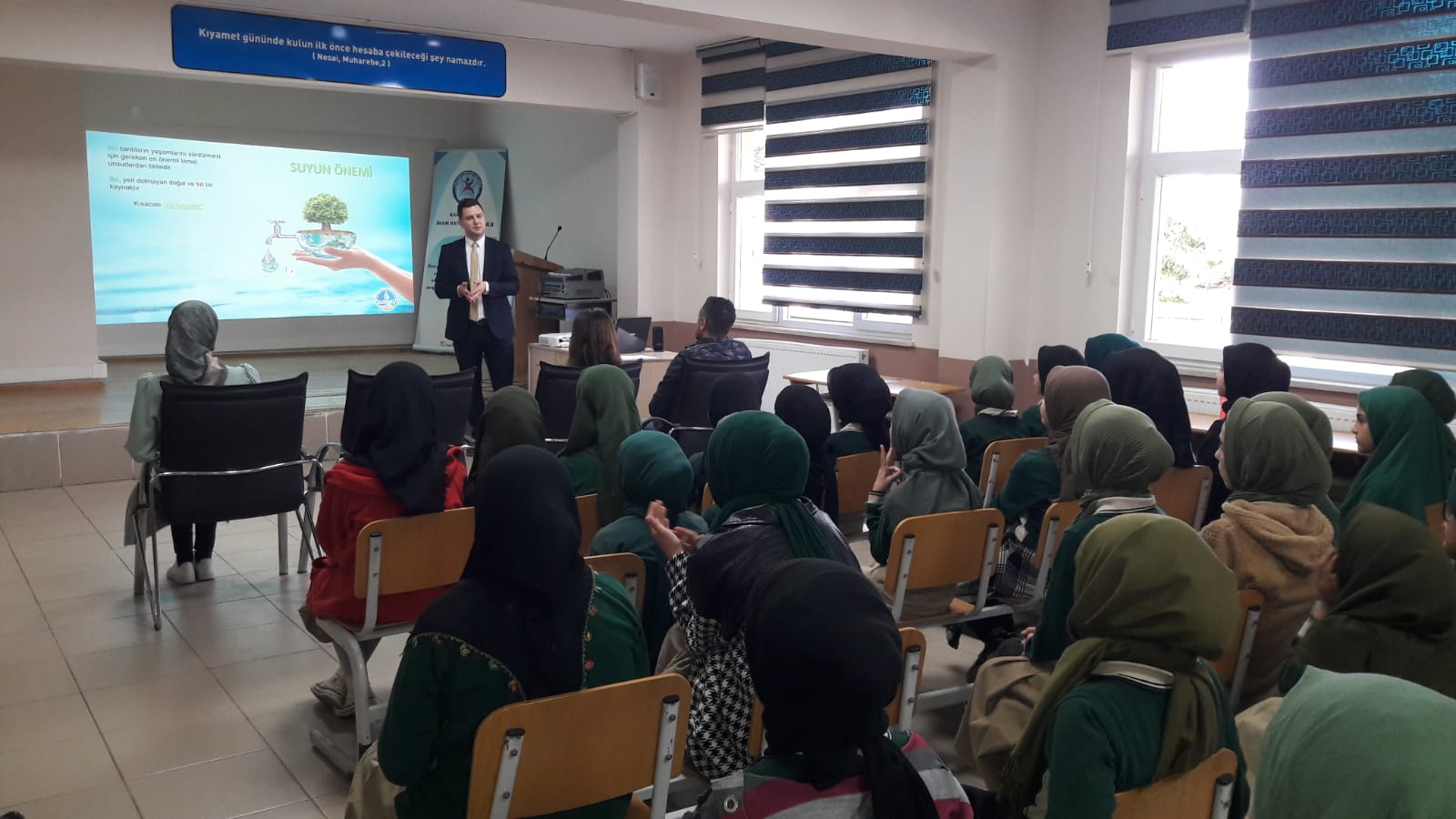 Sakarya Büyükşehir Belediyesi Su ve Kanalizasyon İdaresi (SASKİ), suya verdiği değeri ve önemi gelecek nesillere aktarmak için eğitimlerini sürdürüyor. Bu kapsamda Karapürçek’te bulunan Şehit Mehmet Selim Kiraz İmam Hatip Ortaokulu öğrencileriyle bir araya gelen SASKİ İnsan Kaynakları ve Eğitim Dairesi Başkanlığı personelleri, suyun hayatımızdaki önemi ve doğru kullanımı hakkında bilgileri öğrencilerle paylaştı. Toplum Sağılığı Merkezi Başkanlığı ile işbirliği halinde gerçekleştirilen eğitimin sonunda ise öğrencilere hediyeler takdim edildi.