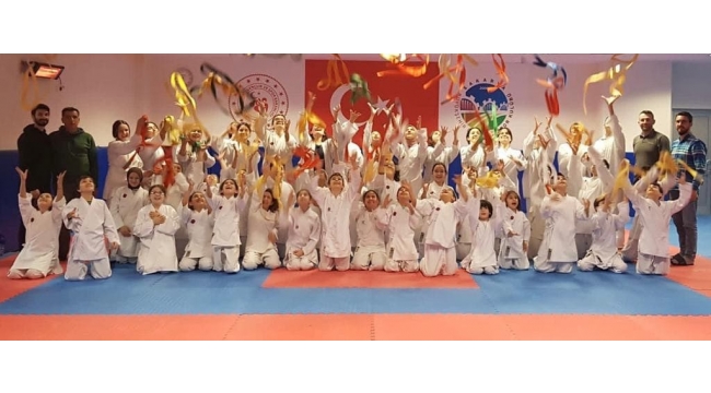 farklı kategorilerde mücadele eden toplam 46 sporcu kuşak atladı. Sporcuların