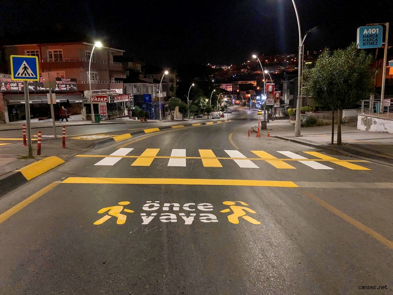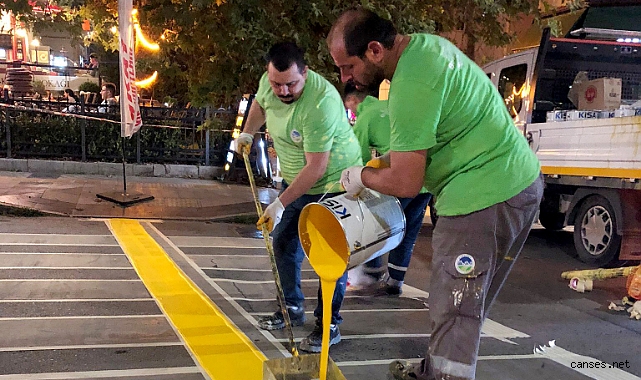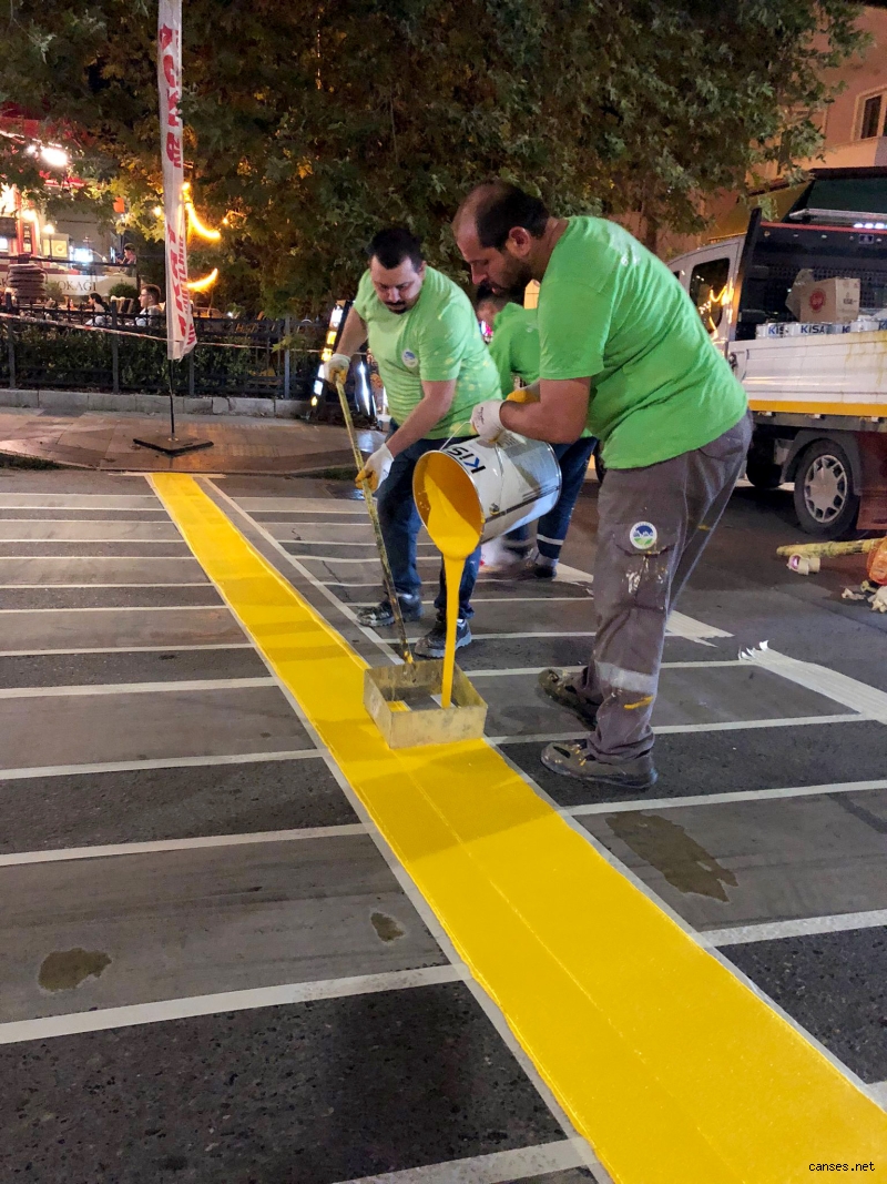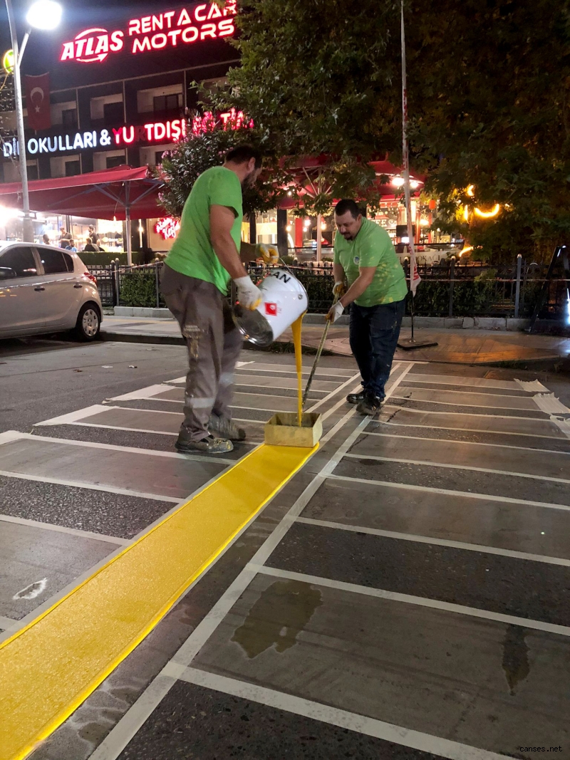 Yaya geçitlerinin baştan sona yenilenmesiyle ilgili çalışma caddenin yoğun trafik akışı nedeniyle, gece saatlerinde başlayıp sabaha kadar kesintisiz bir şekilde ilerliyor. Bu sayede, şehir trafiği olumsuz etkilenmiyor. Ekipler, şehirdeki trafik düzenini iyileştirmek ve yayaların güvenlik seviyesini artırmak için boyama ve şerit oluşturma işlemleri yürütüyor.