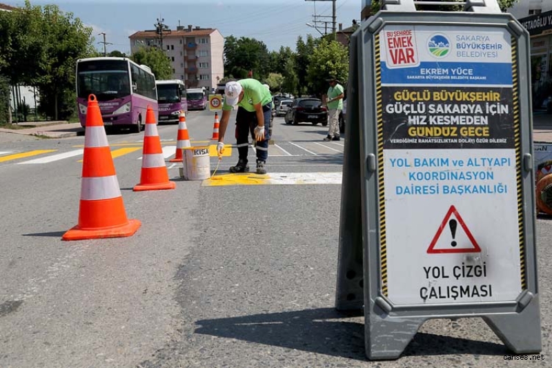 Yol Bakım ve Altyapı Dairesi Başkanlığı Trafik Şube Müdürlüğü’nden yapılan açıklamada; “Ferizli ve Kocaali ilçe merkezlerinde yaya geçitleri yenileniyor. Serdivan ilçesi Bağlar Caddesinde ise bordür boyama ekipleri çalışmalarını süratle sürdürüyor. Havaların ısınmasıyla Trafik Şube Müdürlüğü ekipleri ilçelere çıkartma yaptı. Yol çizgileri yenileniyor, yaya geçitleri boyanıyor ve bordürler canlı renklerine kavuşuyor. Gidilmedik ilçe bırakmayacağız ve düşey işaretleme çalışmaları tam hızıyla sürecek" denildi.