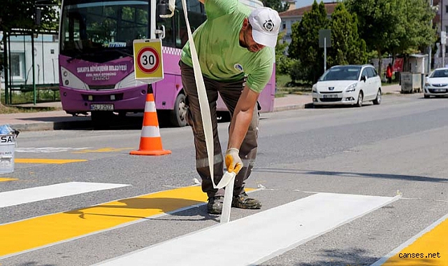 Sakarya Büyükşehir Belediyesi Yol Bakım ve Koordinasyon Dairesi Trafik Şube Müdürlüğü ekiplerince başlatılan yaya geçitleri ve bordür boyama çalışmaları tüm hızıyla devam ediyor. Şehir merkezi ve 16 ilçede planlanan program dahilinde işlemler gerçekleştiriliyor. Ekipler, yayaların güvenliğini sağlamak ve trafiği daha düzenli hale getirmek için yoğun bir mesai harcıyor.