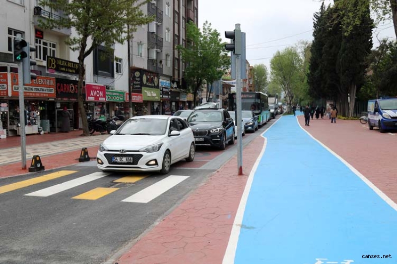 Caddenin Atatürk Lisesi ile Millet Bahçesi arasındaki trafiğe açık bölümünde yürüyüş alanları, bisiklet yolu, peyzaj alanı ve görsel zenginliğe sahip kaldırımlar inşa eden ekipler yaklaşık 1 kilometrelik alanı yepyeni bir görüntüye kavuşturdu.