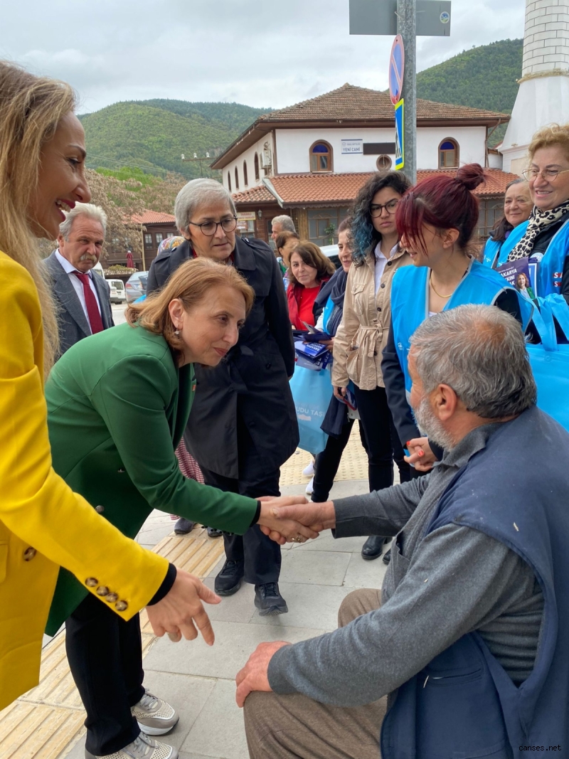 Aylin Nazlıaka, Taraklı’da CHP Sakarya kadın milletvekili adayları Ayça Taşkent ve Azize Ceroğlu İl Kadın Kolları ve İlçe Kadın kollarıyla ilçe merkezinde seçim çalışmalarına katıldı.