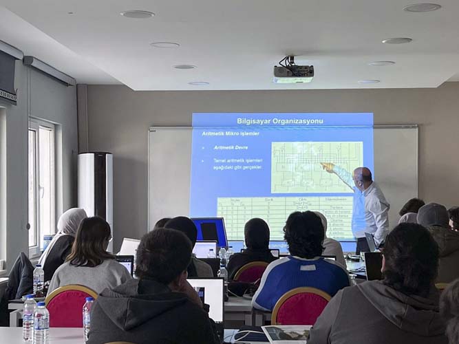 Çip tasarımı ile ilgili ulusal düzeyde bir eğitimin düzenlenmesine katkı sunanları tebrik eden ve öğrencilere Bilgisayar Mimarileri ile ilgili bilgiler veren SUBÜ Bilgisayar Mühendisliği Bölümü Başkanı Doç. Dr. Halit Öztekin, “1 haftalık bir sürede çip tasarımı konusunda gerekli eğitim programının hem akışı hem de eğitimcilerin uzman kişilerden oluşmasına gayret edilmesi projeden beklenen çıktıların elde edilmesine azami derece katkı sundu. Yoğun bir programla katılımcıların gelişimine pozitif etki edildiğini ve çip tasarımına ilişkin farkındalıklarının oluşturulduğunu düşünüyorum. Ülkemizin ekonomisine uzun vadede katkı verebilecek bu konudaki eğitimlerin yaygınlaşmasının ve teşvik edilmesinin bir politika olarak kabul edilmesi gerektiği kanaatindeyim”.