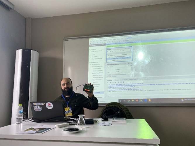 RISC-V İşlemci Çekirdeği Tasarımı dersinde Türkiye’nin yonga tasarım ve üretim dünyasına hızlı ve etkin bir giriş yapmasının kaçınılmaz olduğunun altını çizen Emin Fedar, “Bu tarz eğitimler ise bunun temelini oluşturuyor. Burada gayret gösteren öğrenciler 2-3 yıl sonra işlemci tasarımı denildiğinde akla ilk gelen isimler olacaklar. Hem kendileri hem ülkemiz için çok iyi bir yatırım yapıyorlar” ifadelerini kullandı.