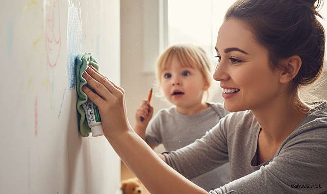 Dikkat: Renkli silgiler duvarda kendi rengini bırakabilir, bu yüzden mutlaka temiz ve beyaz bir silgi tercih edin. Hafif hareketlerle ovalamanız yeterli olacaktır.