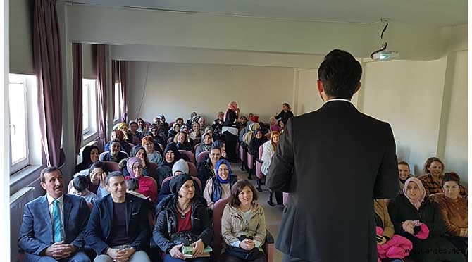 Şehit Ahmet Akyol İlkokulunda düzenlenen Psikolog/Aile Danışmanı Emre Uludağ’ın konuşmacı olduğu “Aile İçi İletişim” konulu seminere öğrenci velileri yoğun ilgi gösterdi. Psikolog Emre Uludağ “Sevgili anne/baba çocuğunuz istediğiniz davranışları göstermiyor olabilir. Çocuğunuza ne yapacağını anlatmak yerine gösterin. Siz örnek olun. Çocuklar söylediklerimizden ziyade yaptıklarımızı öğrenirler. Dolayısıyla öğrenmelerini istediğiniz davranışları önce siz sergilemelisiniz. Eğer çocuğunuzun öfkesine hâkim olmasını istiyorsanız, siz de öfkelendiğinizde öfkenizi kontrol edebilmelisiniz. Ailelerinde tanık oldukları davranışlar çocuklar için normaldir ve yeri geldiğinde aynılarını yapacaklardır.” dedi.