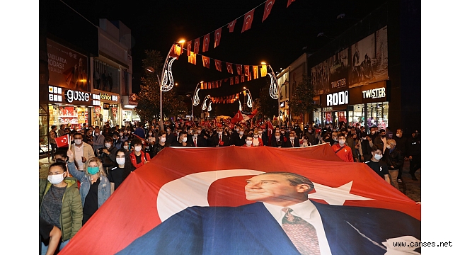 Sakarya Büyükşehir Belediye Başkanı Ekrem Yüce, Demokrasi Meydanı’nda düzenlenen 29 Ekim Cumhuriyet Bayramı kutlama etkinliklerine katıldı. Cumhuriyet Bayramı etkinliklerine Başkan Yüce’nin yanı sıra Vali Çetin Oktay Kaldırım, İl Emniyet Müdürü Fatih Kaya, Sakaryaspor Kulüp Başkanı Cevat Ekşi, SAÜ Rektörü Prof. Dr. Fatih Savaşan, İl Milli Eğitim Müdürü Fazilet Durmuş, İl Gençlik ve Spor Müdürü Arif Özsoy, siyasi parti temsilcileri, muhtarlar, STK temsilcileri, Büyükşehir ve SASKİ bürokratları, basın mensupları ve çok sayıda vatandaş katıldı. Doktor Nuri Bayar İlköğretim Okulu’ndan Demokrasi Meydanı’na kadar gerçekleştirilen fener alayı yürüyüşü ile başlayan etkinlikler meydana kurulan dev sahnede mehter takımının gösterileri ile devam etti. Tüm vatandaşların maske ve mesafe kuralına riayet gösterdiği etkinliklerde vatandaşlar al bayrakları dalgalandırdı.