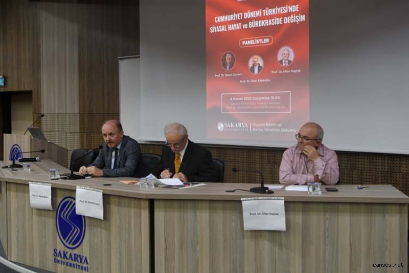 Sakarya Üniversitesi (SAÜ) Hukuk Fakültesi Sabahattin Zaim Konferans salonunda, Türkiye Cumhuriyeti’nin 100. yılı etkinlikleri çerçevesinde, Siyaset Bilimi ve Kamu Yönetimi bölümünün düzenlemiş olduğu “Cumhuriyet Dönemi Türkiye’sinde Siyasal Hayat ve Bürokraside Değişim” adlı bilgilendirme paneli düzenlendi.