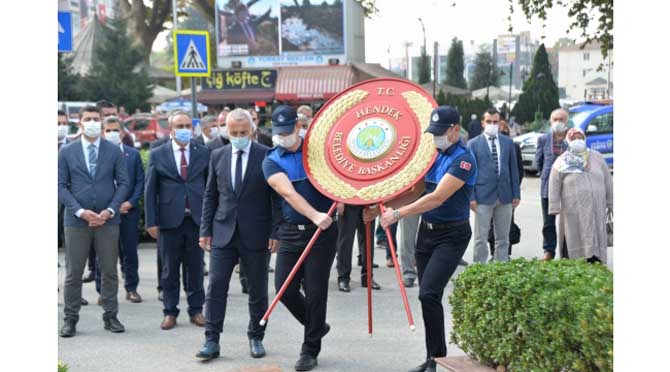 Koronavirüs tedbirleri kapsamında düzenlenen törene Hendek Kaymakamı Halil İbrahim Acır, Hendek Belediye Başkanı Turgut Babaoğlu, Cumhuriyet Savcısı Sebahattin Erkaya İlçe Jandarma Komutanı Teğmen Hasan Alataş, İlçe Emniyet Müdürü Şevket İlhan, askeri erkan, emniyet teşkilatının mensupları, gaziler, siyasi partilerin ilçe başkanları, kurum müdürleri, bürokratlar katıldı. Atatürk Anıtına çelenk sunulmasının ardından İstiklal Marşı okundu ve saygı duruşunda bulunuldu.