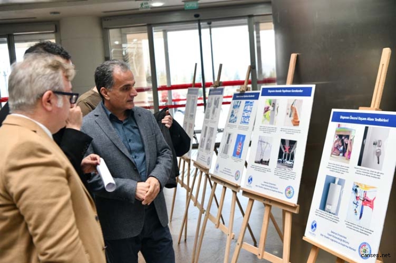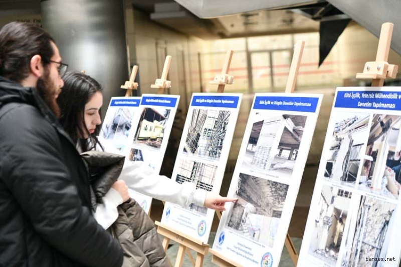 Seminerde, saha çalışmalarına katılan akademisyenlerin deprem bölgesinde çektikleri fotoğraflar SAÜ Kültür ve Kongre Merkezi Fuaye alanında sergilendi.