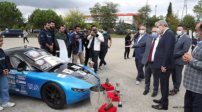 otomobillerle dereceye giren öğrencileri tebrik etti. İki ayrı kategoride